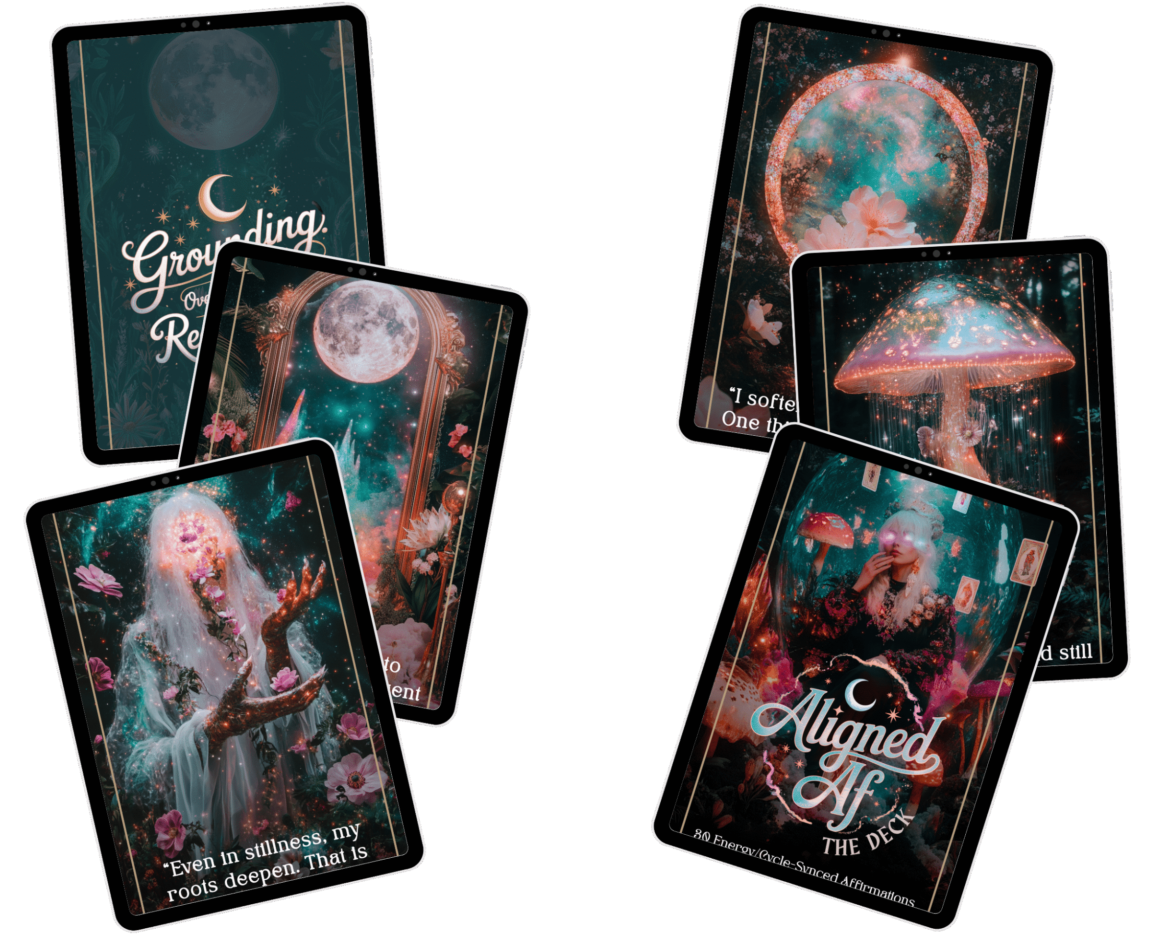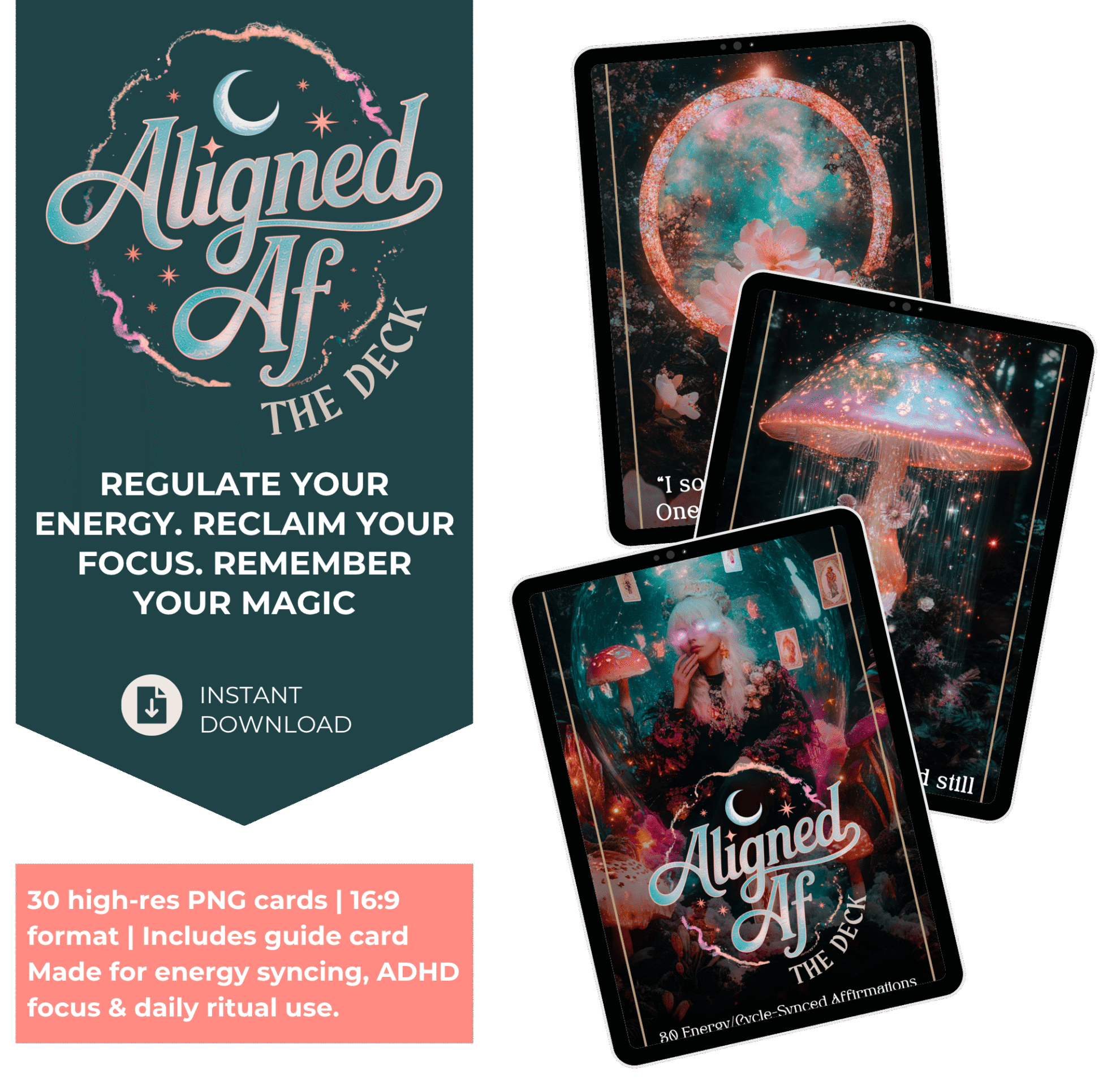 A 30-card cycle/energy-synced affirmation deck designed for neurodivergent, witchy women who want grounded clarity, empowered focus, and flow that actually feels good.