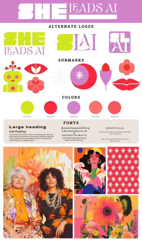 This wasn’t about being “nice” or “clean.” This was about building a powerful, unapologetic, sassy-but-strategic brand for women 40+ who are done waiting for a seat and are now building the damn table. I had one call with the founder: full creative freedom, zero red tape. That trust? It supercharged the creative process. She Leads AI needed a brand that looked the part and sounded like it meant business.